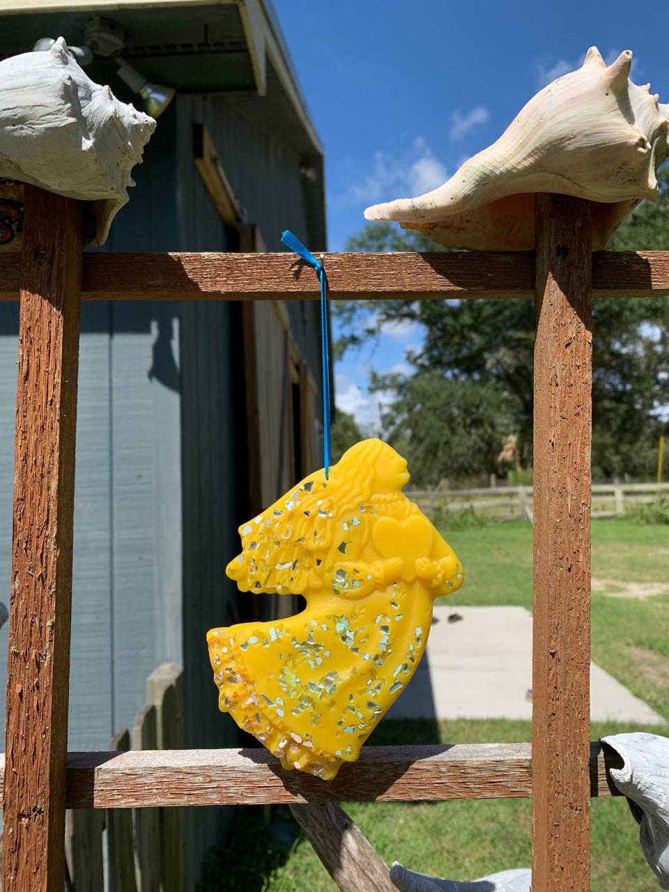 This lovely Beeswax Angel is hand poured in to a vintage stoneware mold made in 1987.