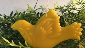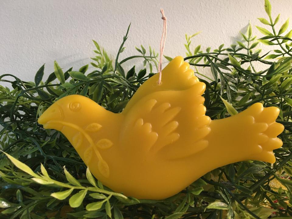 The beeswax Dove of Peace is lovely in it's simplicity. It holds the olive branch in it's beak, wings ready to take flight.