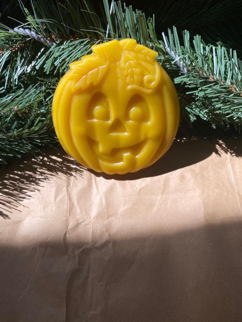 This happy beeswax pumpkin with it’s leafy hat is a must have for your fall decor!