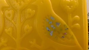 You may choose to have one bird's wing embellished with pink glass and the other bird's wing embellished with blue glass, as seen in the first pics with glass, or you may choose both birds to each have a mixture of pink and blue crushed glass. Of course, you may also choose plain, particularly if you wish to paint this yourself!