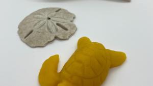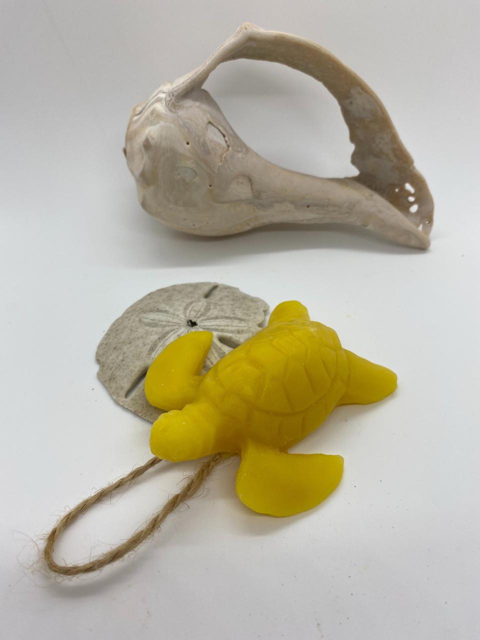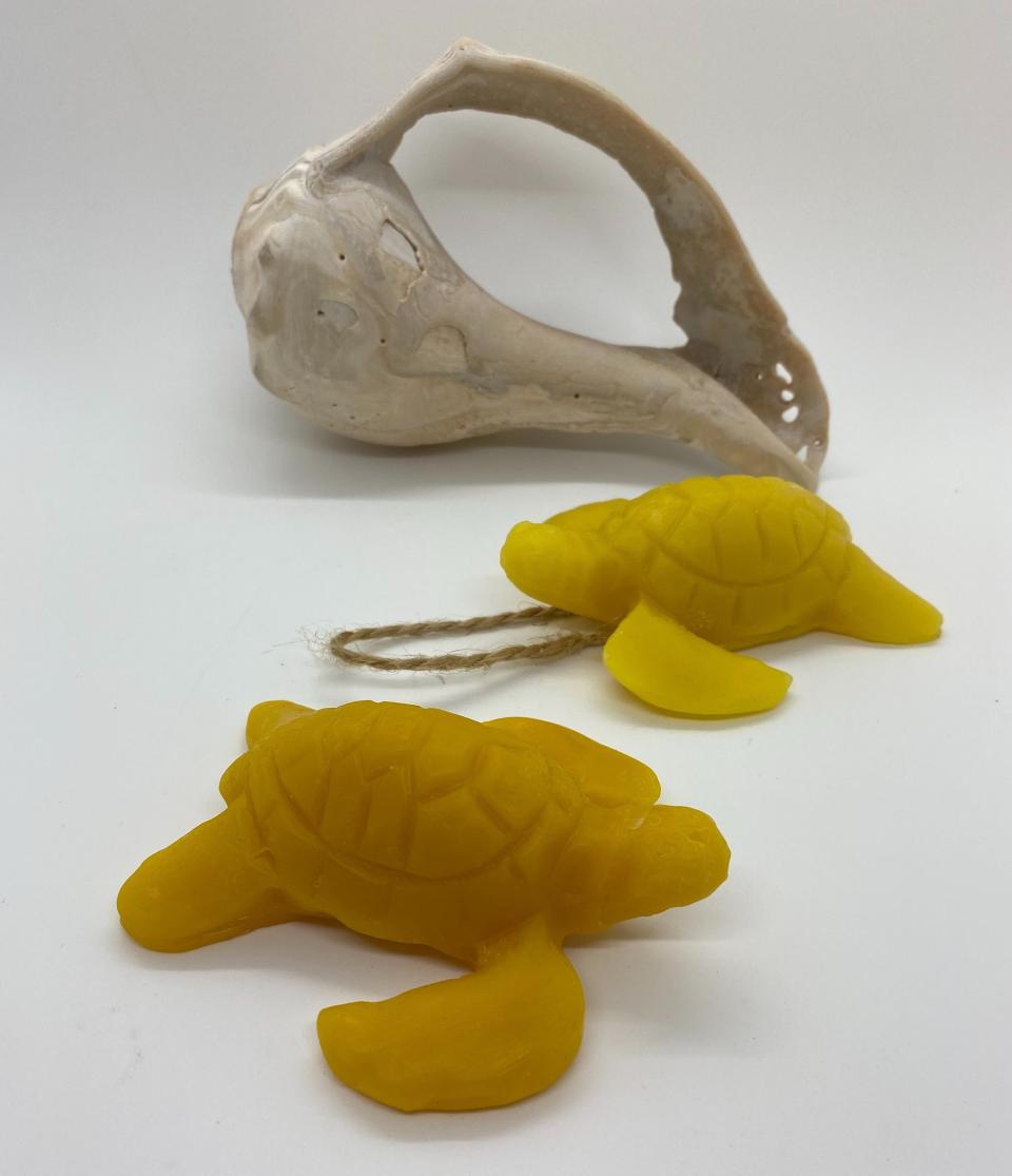 These wonderful beeswax sea turtles are adorable and quite detailed.
